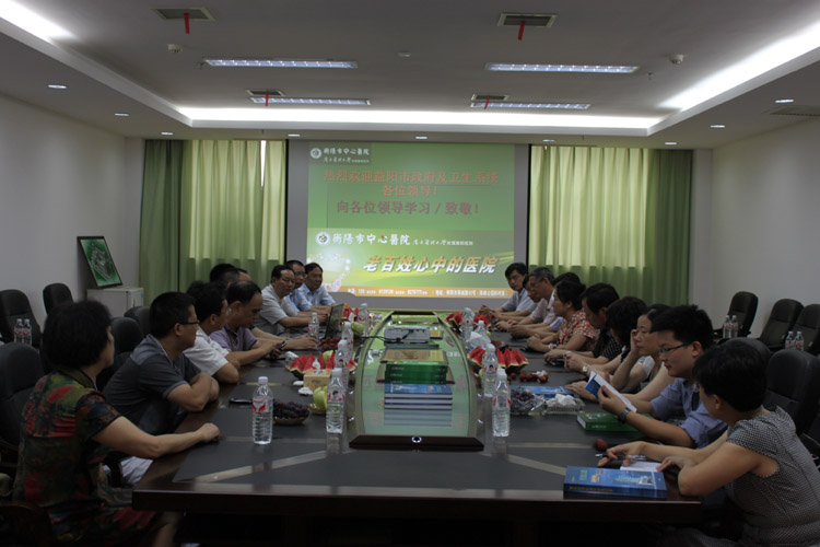 益陽市政府組團來我院考察 發(fā)布時間:2011年7月22日 預覽:4371次 益陽市政府組團來我院考察 7月22日,益陽市政府副秘書長張慧、市衛(wèi)生局局長黃平率領(lǐng)益陽市衛(wèi)生系統(tǒng)有關(guān)領(lǐng)導一行14人來我院考察,衡陽市政府副秘書長劉達祥、市衛(wèi)生局局長趙安民陪同考察。考察過程中,益陽市考察團聽取了我院近幾年建設和發(fā)展有關(guān)情況的PPT演示報告,雙方就落實十項便民措施、開展“三好一滿意”活動和抓好抗菌藥物專項整治行動等方面進行了廣泛交流,隨后,考察團還參觀了我院心內(nèi)科中心和門診部。