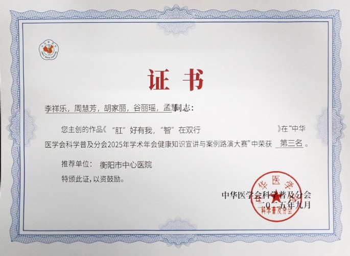 通訊員王旋報道:9月26日至28日,中華醫(yī)學(xué)會科學(xué)普及分會2025年學(xué)術(shù)年會在江西南昌召開。在健康科普創(chuàng)新大賽環(huán)節(jié),衡陽市中心醫(yī)院皮膚科、乳甲外科和肛腸外科選送的科普作品,分別榮獲健康科普作品展示大賽第二名和健康知識與案例路演大賽第二名、第三名的好成績。