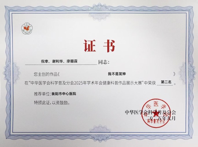 在本次大賽中衡陽市中心醫(yī)院一系列高質(zhì)量科普作品獲獎,體現(xiàn)了衡陽市中心醫(yī)院深入貫徹健康中國戰(zhàn)略,高度重視健康教育,廣泛開展健康科普工作的工作成效,充分展現(xiàn)了醫(yī)院醫(yī)學(xué)科普工作的蓬勃生機(jī)與創(chuàng)新活力。