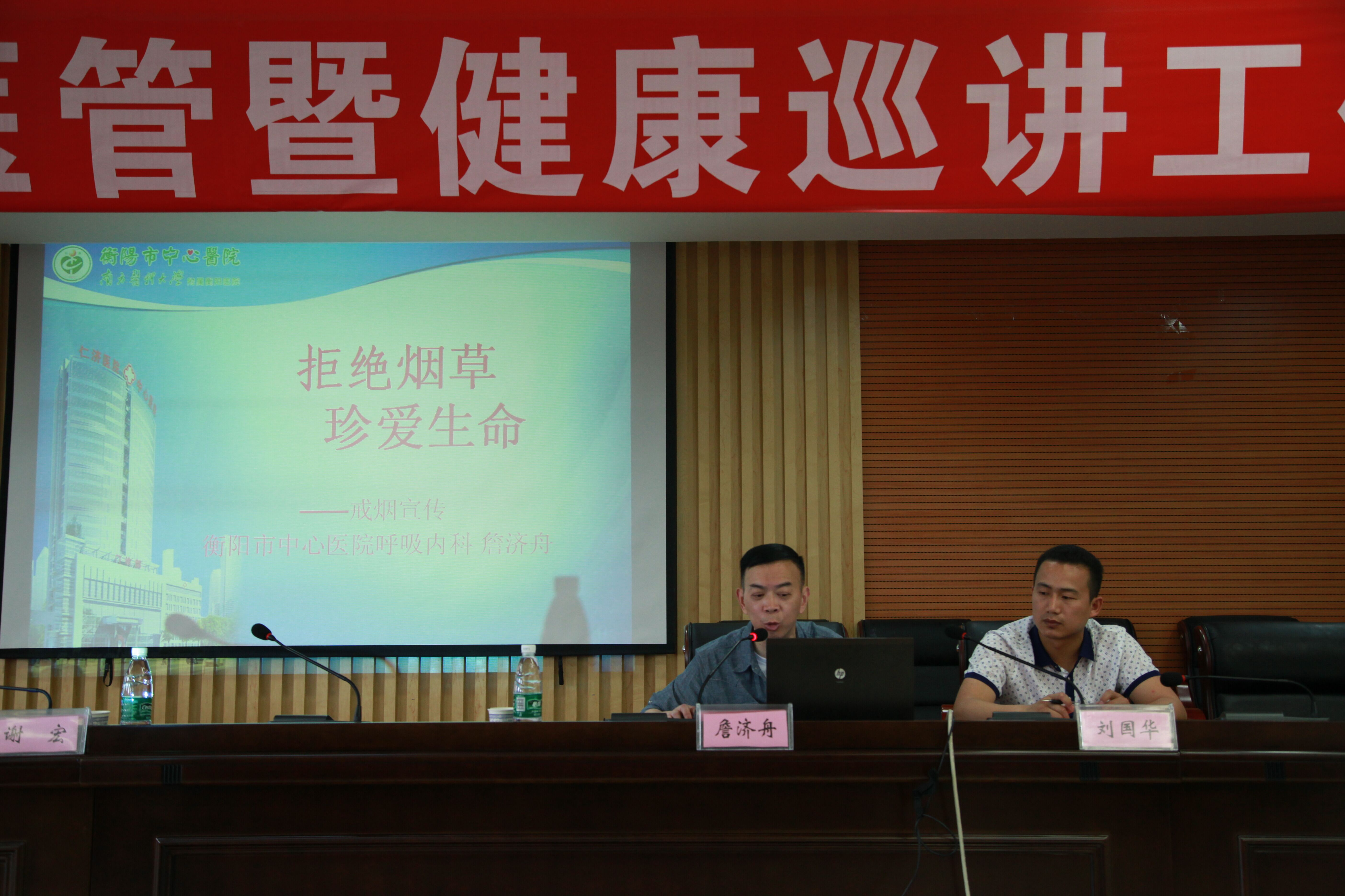 我院專家走進石鼓開展健康講座 發(fā)布時間:2016年6月7日 預覽:3606次 世界無煙日健康講座走進石鼓——創(chuàng)建文明城市 讓我們向香煙說“不” “聽完詹教授的講座后,我感覺咱們必須得戒煙了!”走出講座課堂的居民肖先生如是說。 6月3日,世界無煙日講座走進石鼓區(qū),主講者是中華醫(yī)學會湖南省呼吸專業(yè)委員會委員,湖南省康復委員會呼吸康復委員會委員,衡陽市呼吸專業(yè)委員會副主任委員,全國衛(wèi)生系統(tǒng)先進工作者(勞模),衡陽市中心醫(yī)院呼吸內科主任詹濟舟教授,本次講座的主題為“拒絕煙草,珍愛生命”。 詹濟舟從“世界無煙日”的由來、香煙的成分、吸煙的危害以及禁煙措施等多個方面做了深入淺出的講解,講課內容中外結合、數(shù)據(jù)詳實、事例生動、圖文并茂,他突出強調了吸煙是哮喘、肺炎、肺癌、心臟病等諸多疾病的誘導因素,絕大多數(shù)吸煙者會因為吸煙而使健康、壽命受到嚴重損害。他指出,香煙對我們有害無益,沒有煙霧,空氣會更加清新,沒有煙草生命會更加絢爛,并呼吁大家要自覺遠離香煙,還要幫助親人、朋友革除吸煙這種不良嗜好,積極參與到營造社會無煙環(huán)境的建設中去。