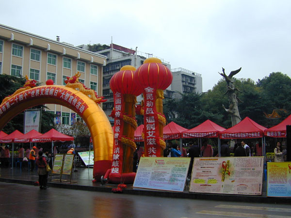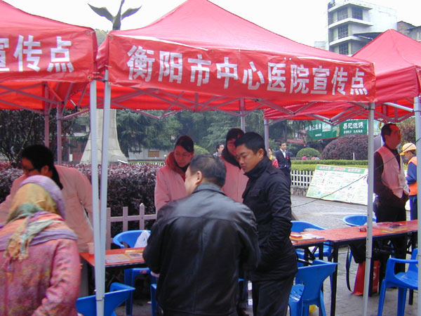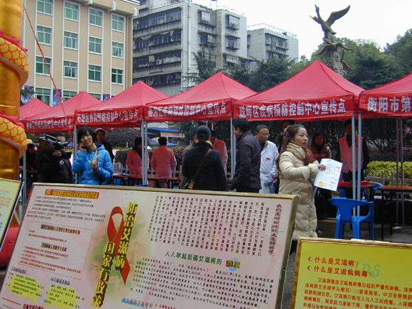 遏制艾滋,呵護(hù)生命 發(fā)布時間:2011年12月2日 預(yù)覽:2774次 遏制艾滋 呵護(hù)生命 2011年12月1日,第二十四個“世界艾滋病日”,衡陽市衛(wèi)生局組織了衡陽市紅十字會、市區(qū)疾控中心、市中心醫(yī)院等12家醫(yī)療單位冒著陰雨寒冷的天氣在雁峰公園旁舉行了大型的宣傳活動,制作了16塊圖文并茂易懂耐看的宣傳版,發(fā)放了艾滋病防治健康教育“五個一工程”供大眾閱讀的8種資料近1萬份,還發(fā)放了藥物和安全套,義診咨詢3000余人次。同時市區(qū)各大醫(yī)院在門診也開展相關(guān)的宣傳活動。 圖/文:衡陽市中心醫(yī)院門診辦張永明